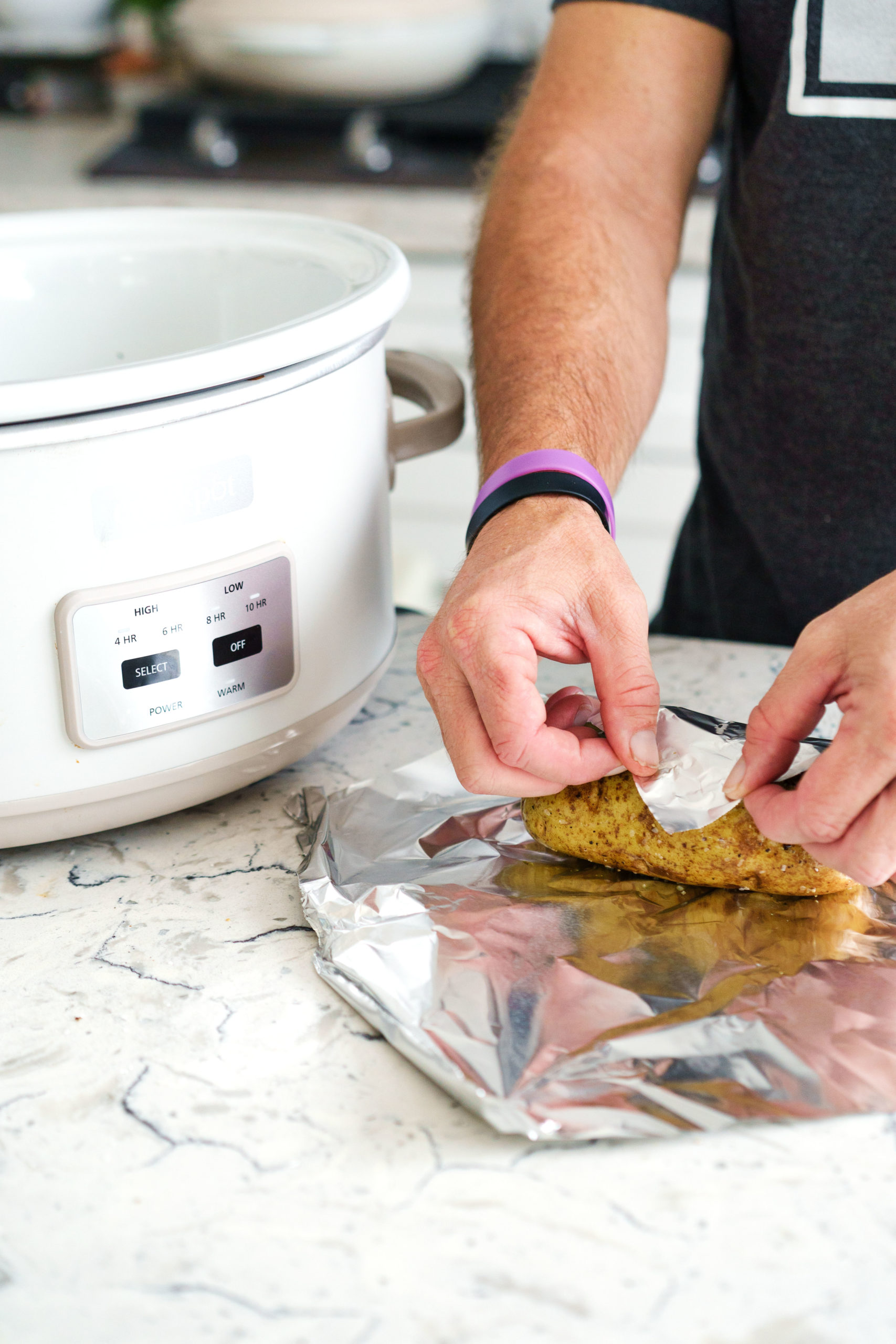 Slow cooker baked potatoes. This is life changing! No more hours of being tethered to the oven or using baking nails to speed up the bake time.