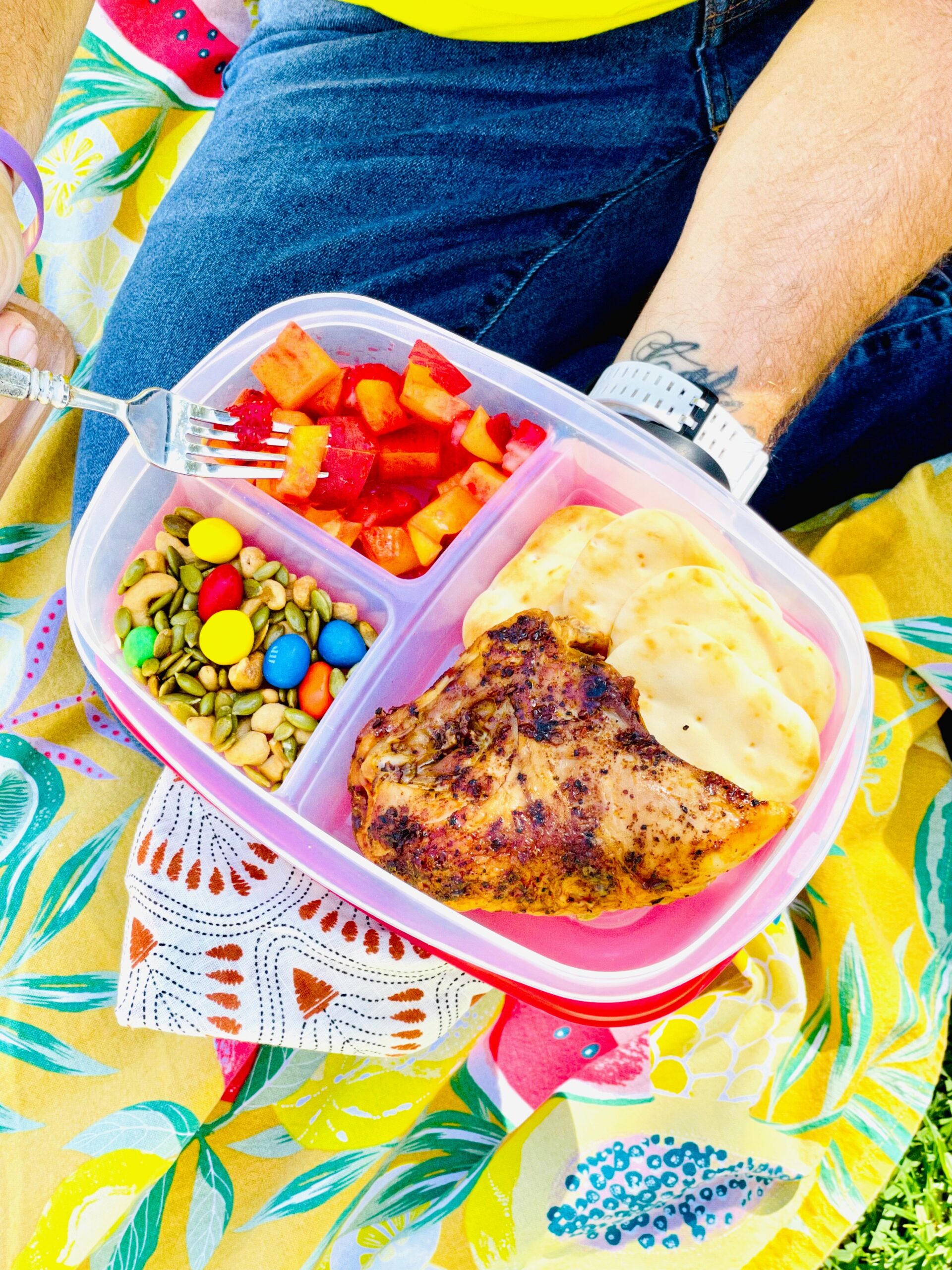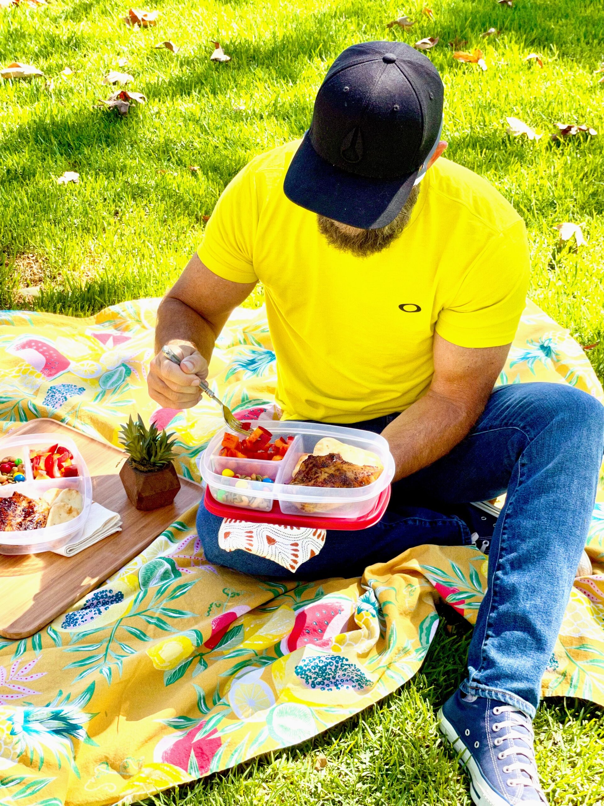 No matter what I decide on, Rubbermaid EasyFindLids Meal Prep Containers makes meals-on-the go for any picnic or adventure fuss-free. The lids and bases snap together for a modular design. This key detail keeps the containers from going topsy-turvy in transport. The divided container keeps food separate, so I can avoid packing multiple containers.