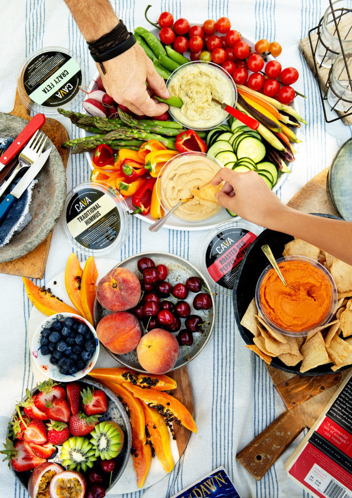 For this excursion, I kept it simple with a fruit and crudite platter. My boys are big into hummus, especially Cava’s hummus. Cole loves their Traditional Hummus, while I’m the biggest fan of the Roasted Red Pepper Hummus. Naomi is split between that and their Crazy Feta dip which is the perfect combination of spicy and creamy. My little toddler loves it all. If he had his way, he would skip the veggies and just go for a spoon. Which most times, I don’t mind, but the point of the picnic was to stop, slow down and savor. Spooning straight from the container is saved for those rushed times when I’m carting him from preschool to swim lessons.