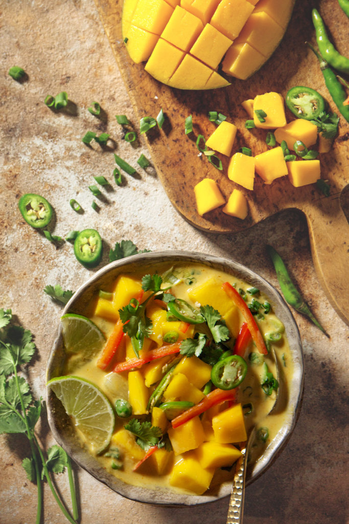 Speaking of year-round, this Mango Coconut Curry Soup may break all the rules when it comes to soups and seasonality. I do this one whenever the craving strikes. Who has ever heard of doing soup only for cold weather months – that is crazy talk – especially when mangos are available all year long.