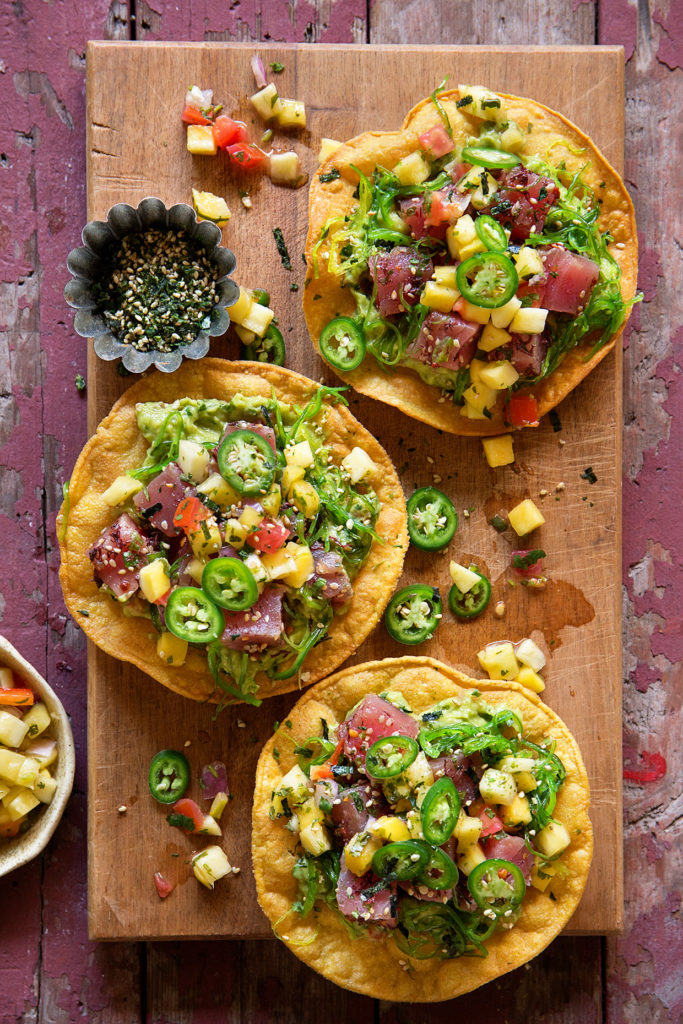 Since we are talking about grilling, let’s make sure we round out our alfresco dining with these Poke Mango Tostadas. It’s a must make, but let’s be real, if you live in my house this is a repeat offender from January to December.