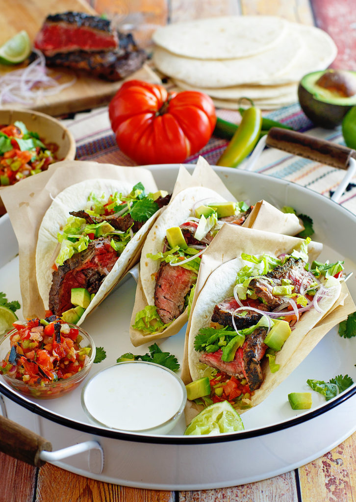 - Warm tortillas by wrapping it in aluminum foil and place it on the top rack of the grill while the steak is grilling.