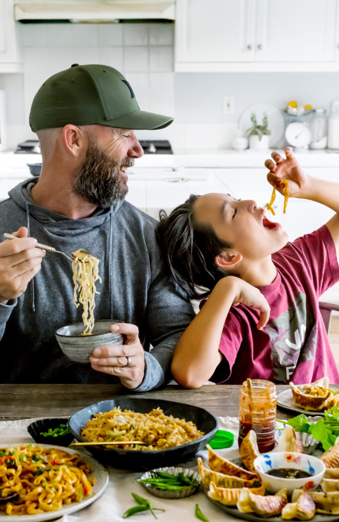 My kids love it and I can feel good about serving them anything from: Thai-Style Drunken Noodles with Chicken, Spicy Miso Chicken, Tokyo Style Ramen, Japanese Style Yakitori, Chicken Fried Rice and Potstickers. Their dishes are made with simple ingredients and never contain, additives, preservatives, artificial colors or flavors. And just as equally important is saving what would have been the time in the kitchen for time at the table connecting with Naomi and the boys.