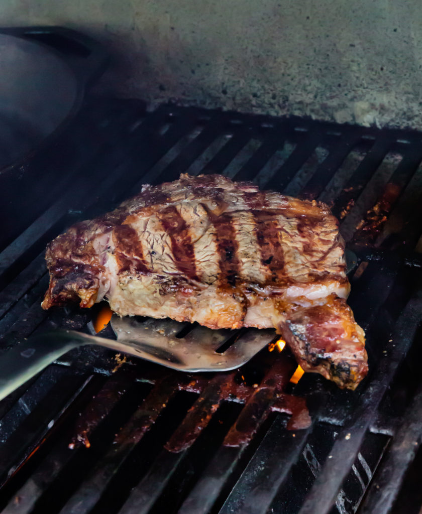 Grilled Rib-Eye Steak with Mushrooms and Cauli-Mash with pools of au jus is this week’s flavor bomb dinner in 30 minutes via Weber Grills new cookbook.