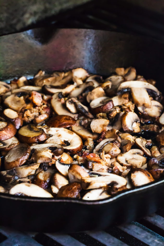 - Add the oil and pancetta to the griddle and cook until the pancetta is lightly browned, 1 to 2 minutes, stirring occasionally. Add the mushrooms, spreading them out in an even layer, and cook, with the lid closed as much as possible, until seared golden brown and tender 6 to 8 minutes, stirring occasionally.