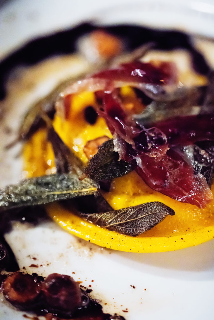 The little guy started by just picking off of everyone’s meal. I tried to get him to have some octopus with the olive yogurt sauce – which was amazing – but he declined, saying it was a character from one of his favorite shows. Eventually we found him something he settled on, the runny egg yolk filled raviolio with duck prosciutto—something we all dug into it, so we ended up having to order him a second one.