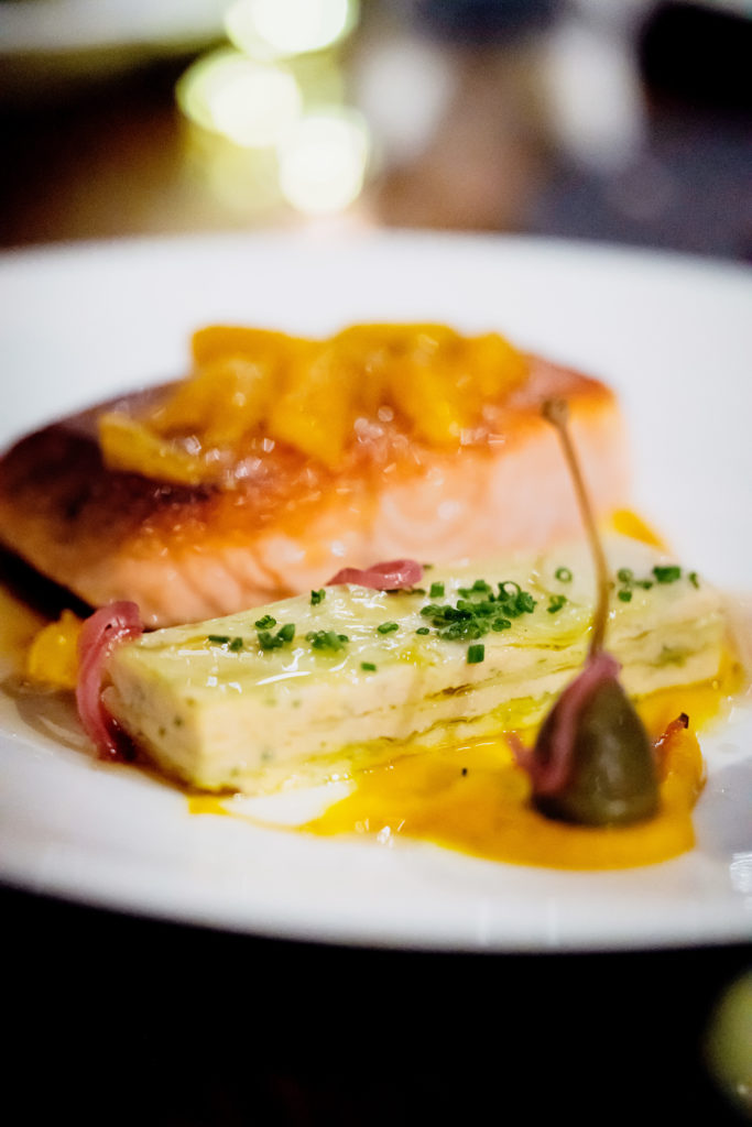Speaking of dining out, tradition has it that after the entertaining aspect of the holiday kickoff, there’s a fine-dining dinner. We hit Broadway in Laguna because it’s been on our list forever. The kids didn’t love it as much as Naomi and I did, but she and Cole ordered the branzino and a cheese plate on the side—I know, odd combo, but the two of them are perfect at dinner together. They always order weird combos and are the first to be adventurous. Broadway also does whole fish dishes—tails attached (and sometime heads attached as well). That’s not really for me, but I did take a taste and the cauliflower puree and truffle jus was the best part.