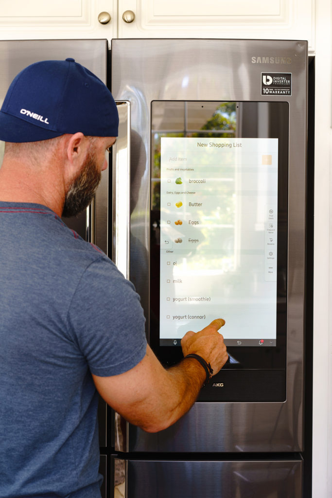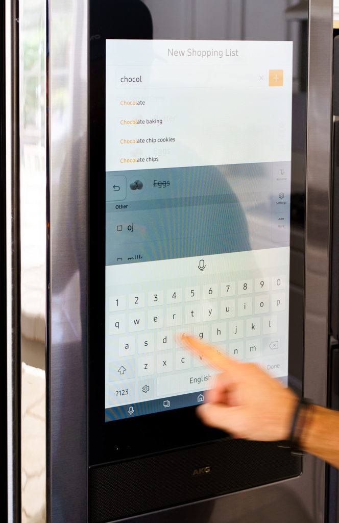 Let’s start with the refrigerator. Next to its uber cool design, the refrigerator is a smart refrigerator, this means it’s equipped with a 21.5” touch screen that features cool things like: